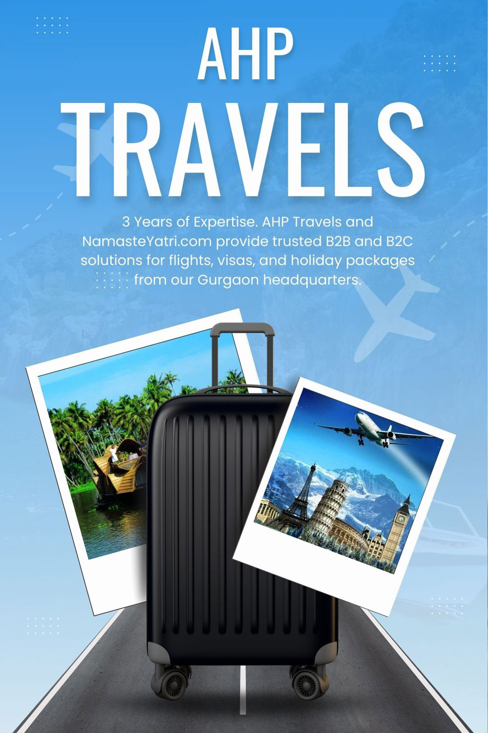 AHP Travels, based in JMD Megapolis, Gurgaon, has provided trusted travel solutions for 3 years. Now with NamasteYatri.com, we offer a seamless B2B & B2C portal for flights, packages, and expert visa assistance.